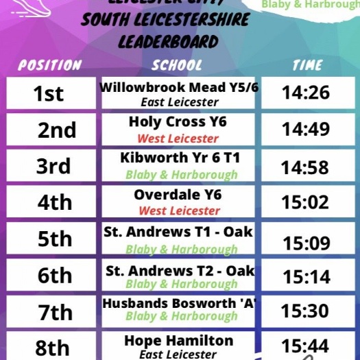 A huge well done to all the children in KS2 who participated in the Virtual 5K Competition run by Learning South Leicestershire School Sports Partnership. Our children in Oak came 2nd and 3rd overall in their district (Blaby and Harborough) and 5th and 6th on the City of Leicester and South Lei...Read Full Story - 06/10/20